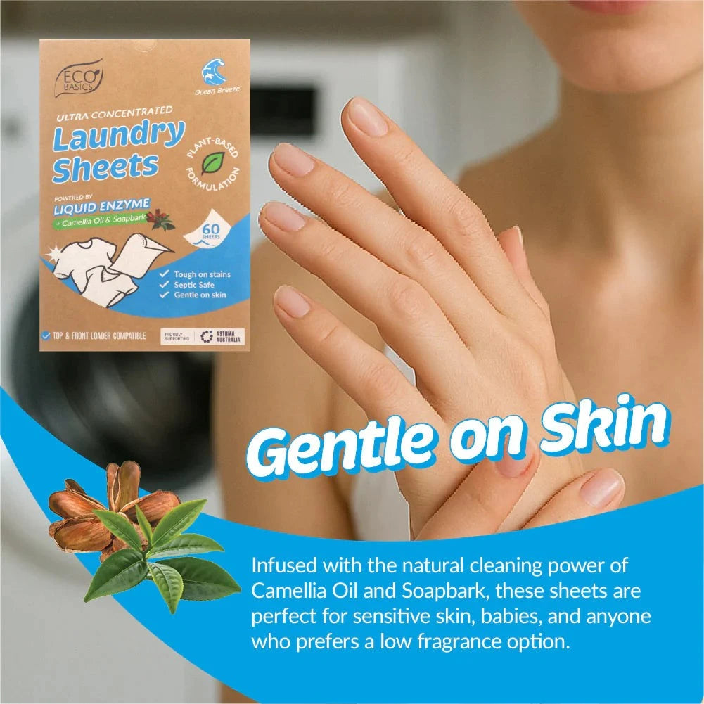 Eco Basics Laundry Sheets deliver powerful cleaning with a conscience—effective, eco-friendly, and kind to your skin and the world around you.