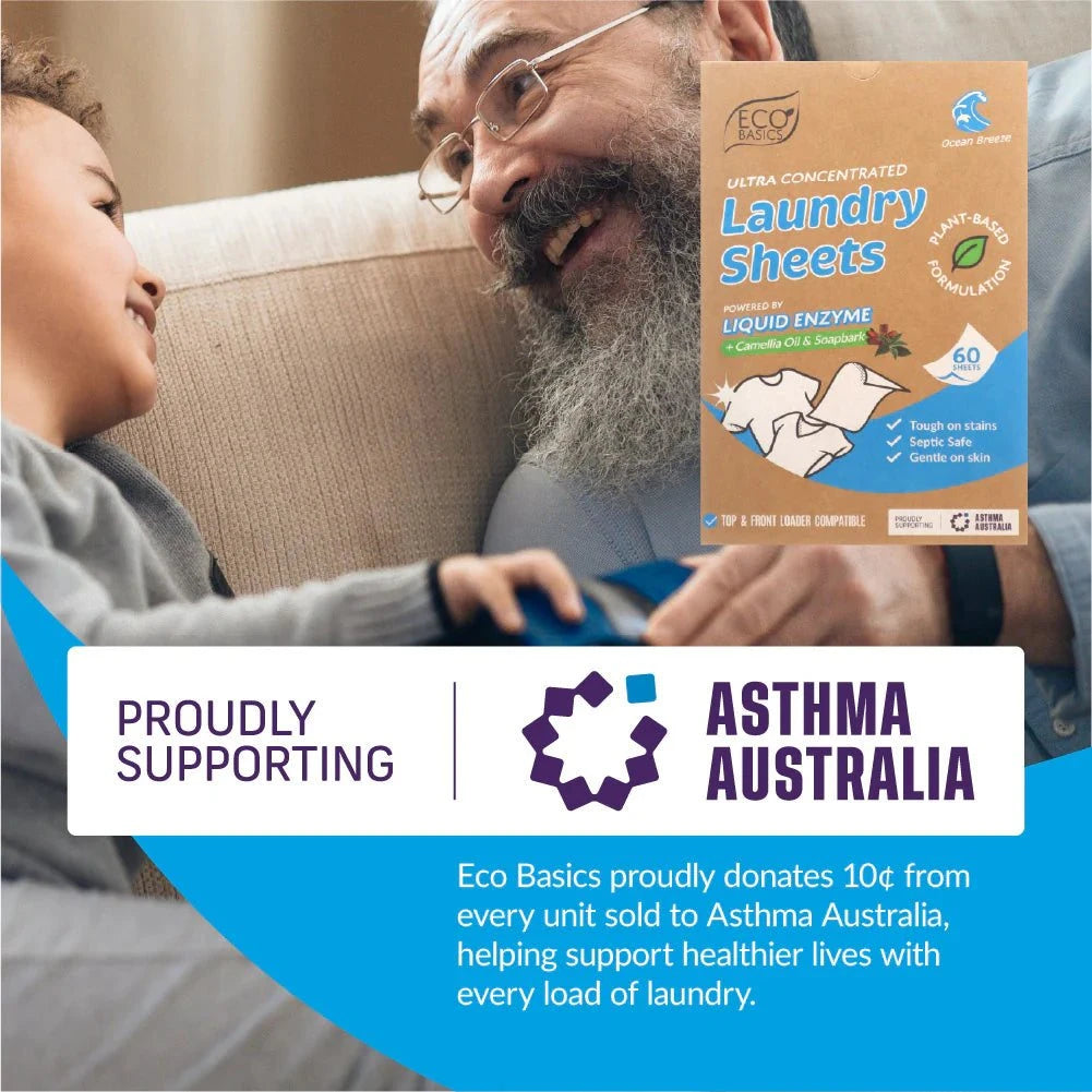 Eco Basics proudly donates 10¢ from every unit sold to Asthma Australia, helping support healthier lives with every load of laundry.