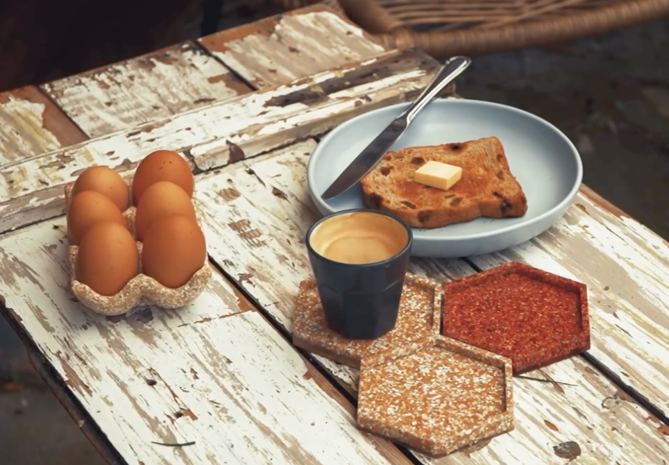 How beautiful are these eggshell coasters in various shapes made from rescued waste eggshells from Hospitality venues, that are cleaned, crushed and combined with the Change Climate Natural Bio-Epoxy to produce carbon sequestering homewares!